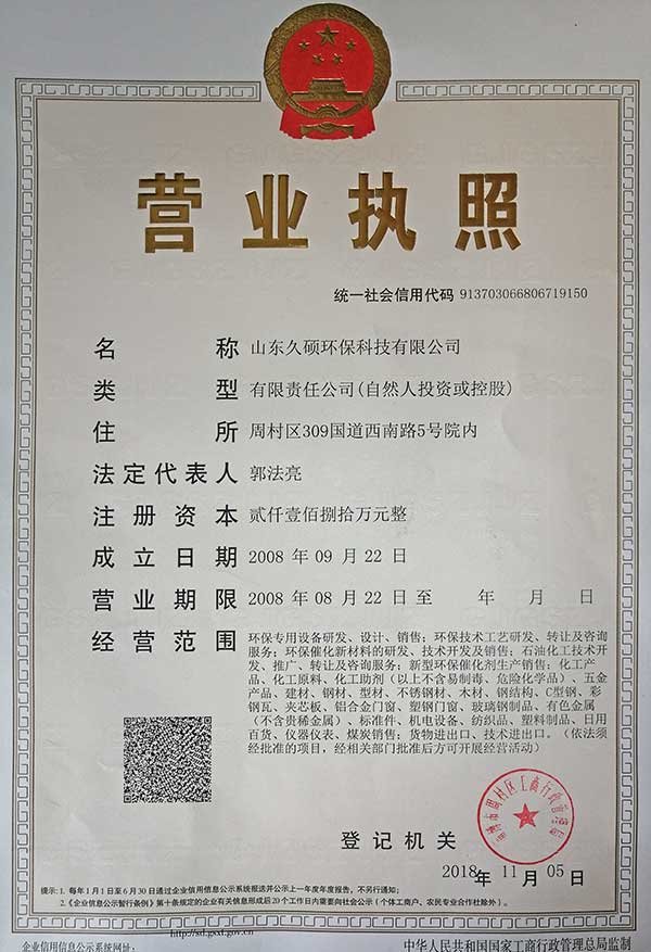 山東久碩環(huán)??萍加邢薰?/strong>成立于 2008 年,位于山東省淄博市周村區(qū),主要從事催化劑研制開發(fā)、生產(chǎn)、銷售及相關(guān)技術(shù)服務。2017年在青島合作建立新的催化劑生產(chǎn)基地,年產(chǎn)能可達5000噸。